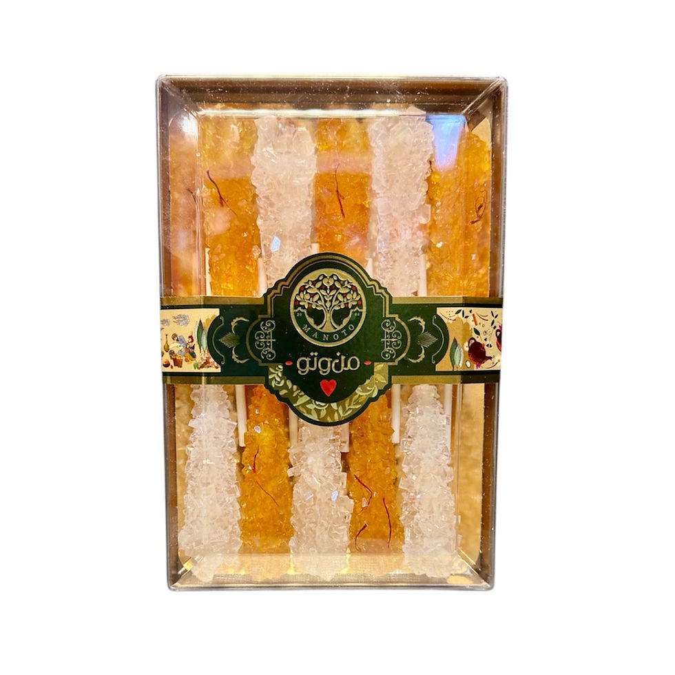 Gaz ist ein zarter Nougat aus Isfahan oft mit Pistazien verfeinert. Nabat also Kandiszucker ist ideal für Tee. Sohan ist knusprig süß mit Safran und Mandeln und wird gern zu besonderen Anlässen gereicht.